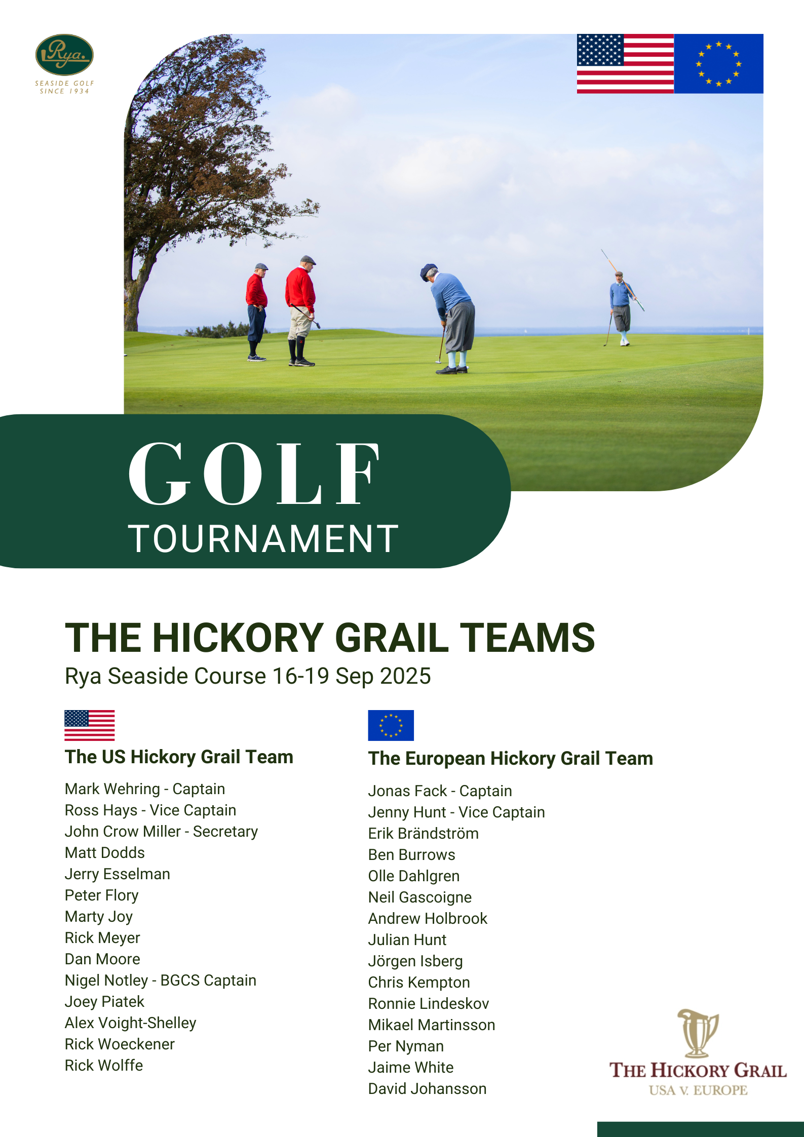 The 14th Hickory Grail will be played at Rya GK, Helsingborg, Sweden in mid-September 2025.